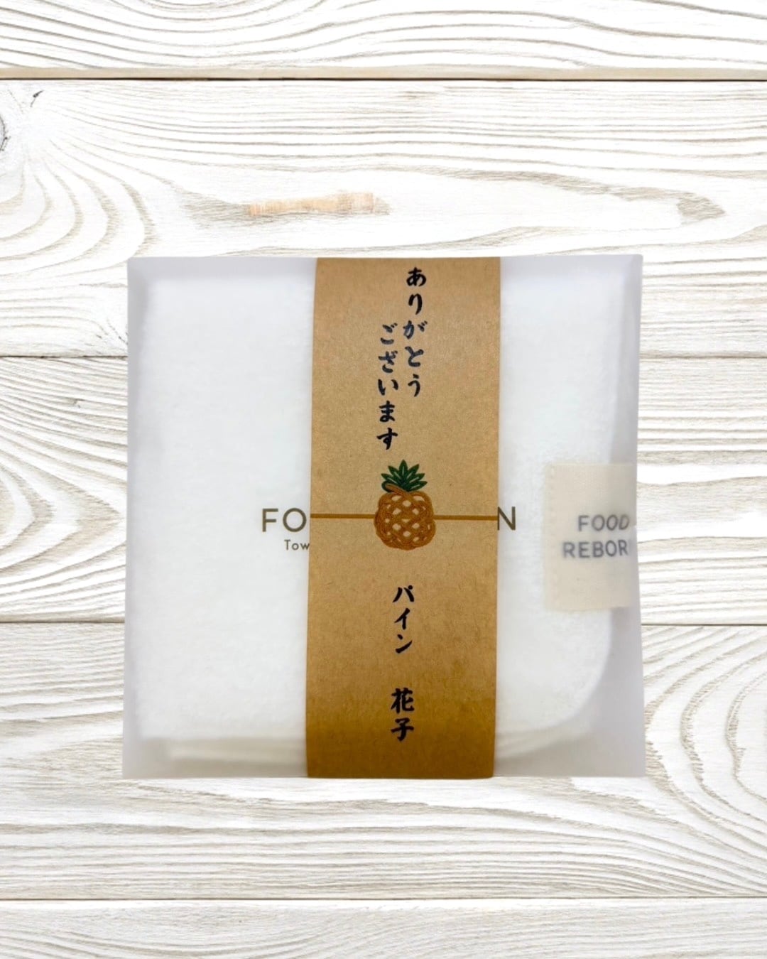 沖縄の大自然で育まれたパイナップルの葉から抽出した繊維を約130年の歴史と伝統を誇る泉州のタオル製造技術で織りこみオリジナルのハンドタオルを作りました